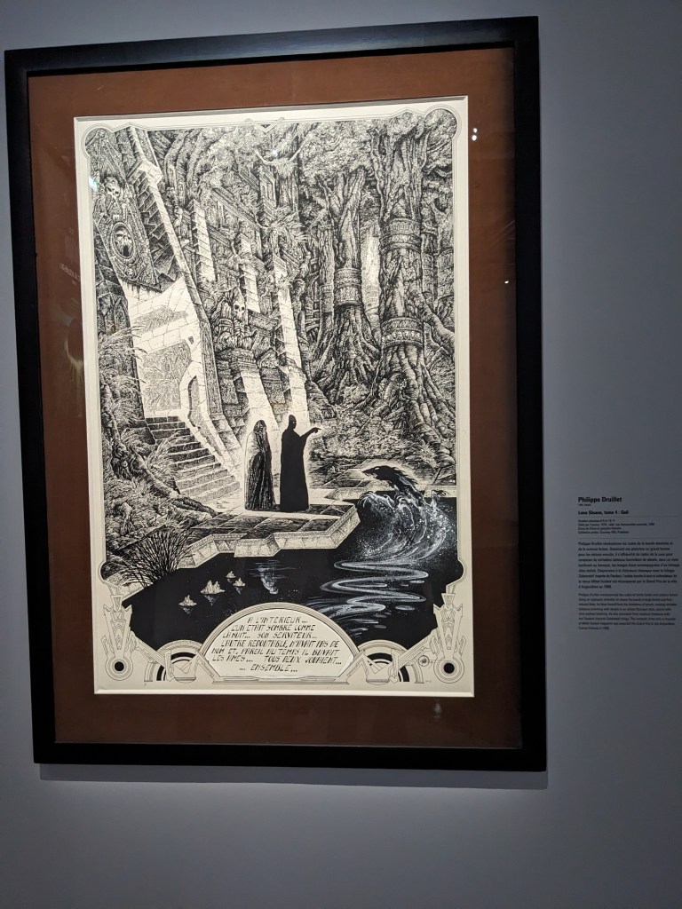 I liked a French sci-fi comics author I did not know, called Philippe Druillet from Toulouse, whose black and white drawings look very futuristic and video game like drawings (and the story sounds intriguing)